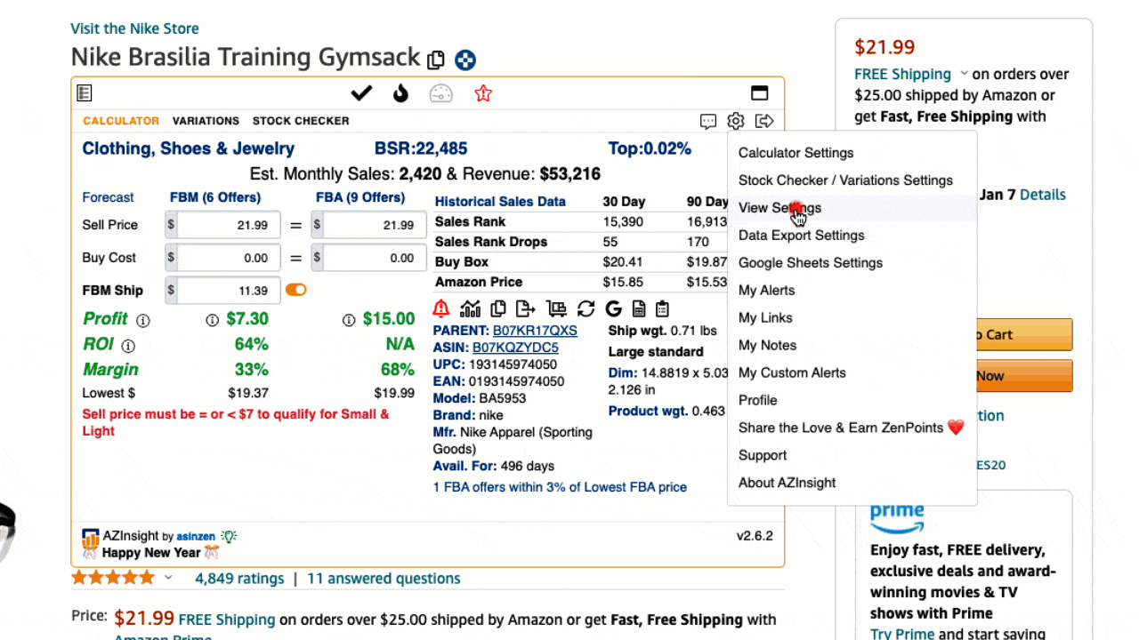 Calculator: Added a link to allow an EU Amazon Seller to go directly to the ASIN on another marketplace from the Marketplace Overview screen.