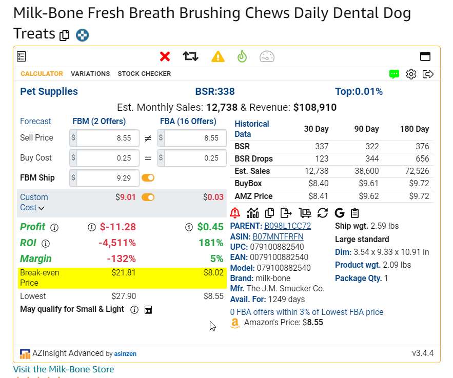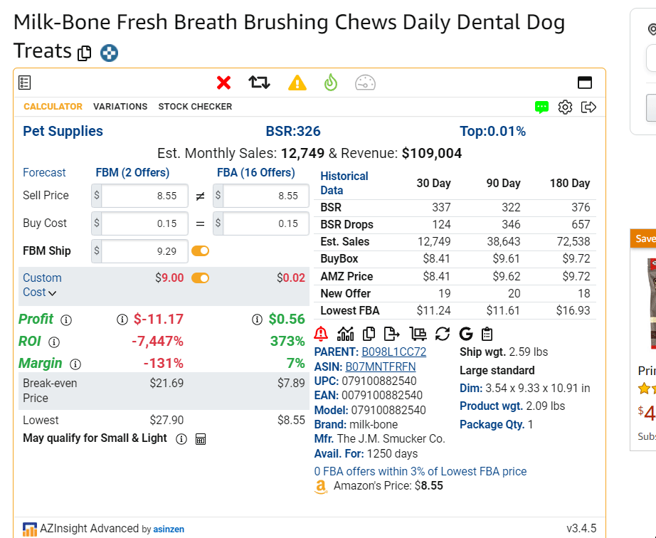 In previous versions of AZInsight, if you wanted to take a quick look at the New Offer Count on AZInsight you had to click on the Historical Data to find the New Offer Count or the Lowest FBA Price average.